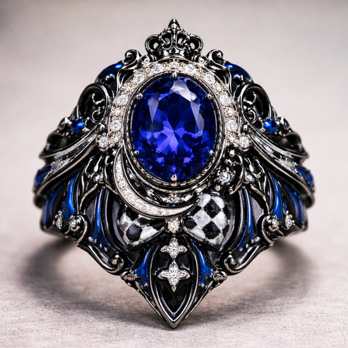 Make me a ring with the aesthetic circus Ouji. Make it royal blue with black and some white.
