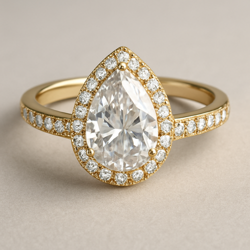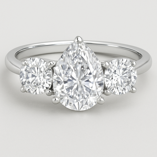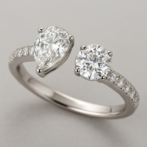 One carat pear asymmetrical with one carat round in white gold diamond band