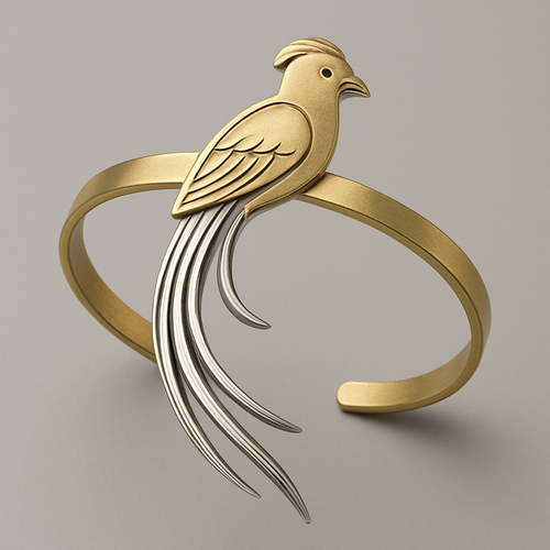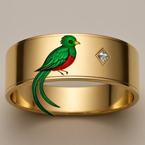 Bracelet ancho 8mm con el quetzal sobre el brazalete y enamel diamante