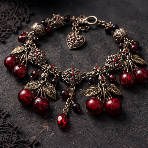 Bracelet with cherries charms and beads