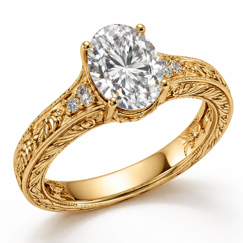 Engraved gold oval engagement ring 3 ct