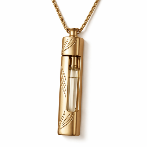 Minimalistic pendant, square shape with soft corners. The whole pendant should be like a case for mini perfume tester ma...