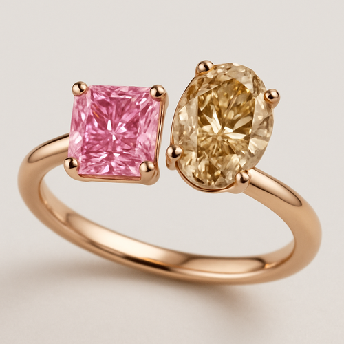 2 stoned pink radiant diamond and a champagne brown oval diamond