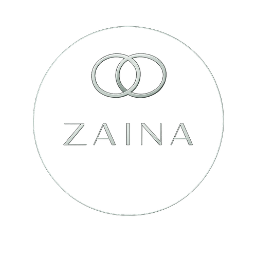 "A elegant and minimal logo for 'ZAINA' fashion jewelry, featuring an emerald green circular background with metallic si...