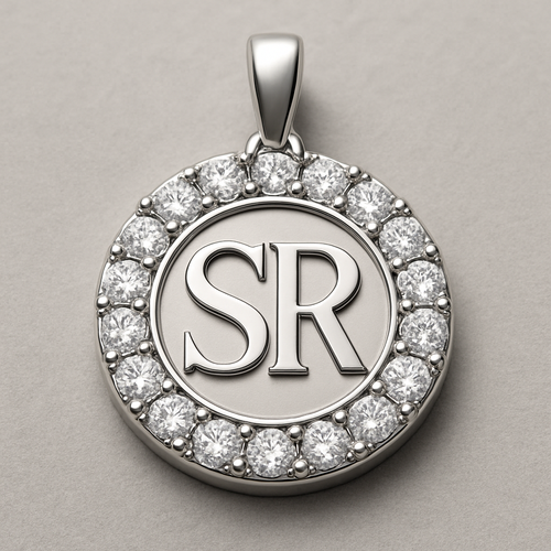 Brilliant shape with diamonds centre of the ring with letter SR and side of the ring stones