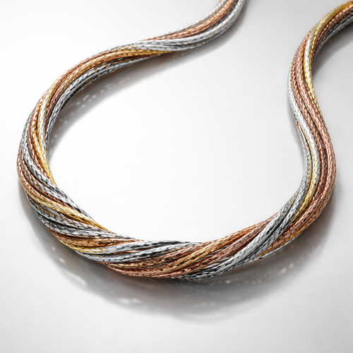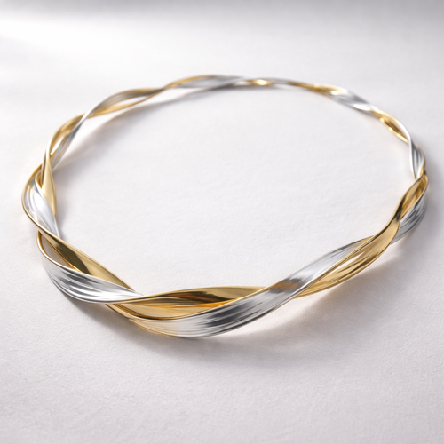 A flexible necklace which is not rigid and inspired of twisted flat wire