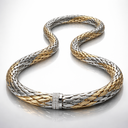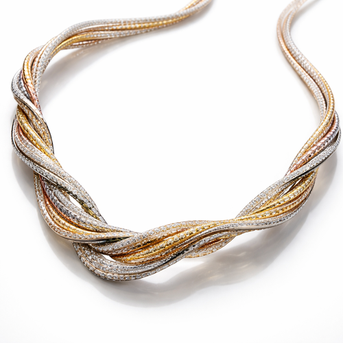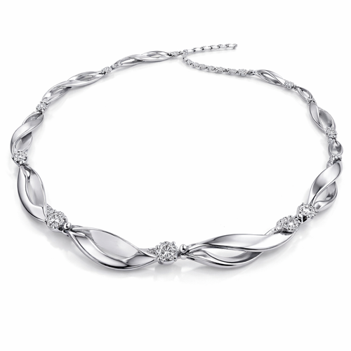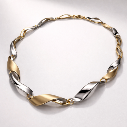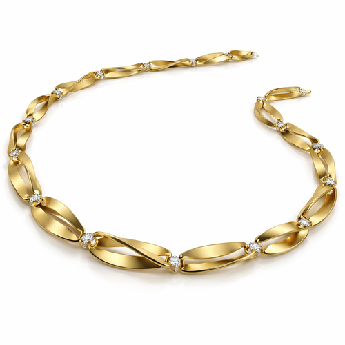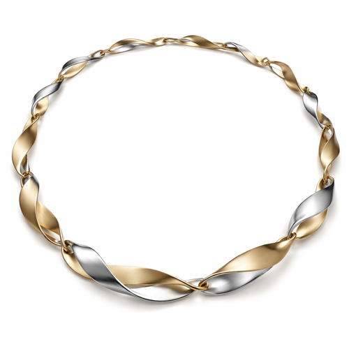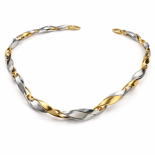 A flexible necklace which is not rigid and inspired of twisted flat wire and it has links that connected the pieces with...