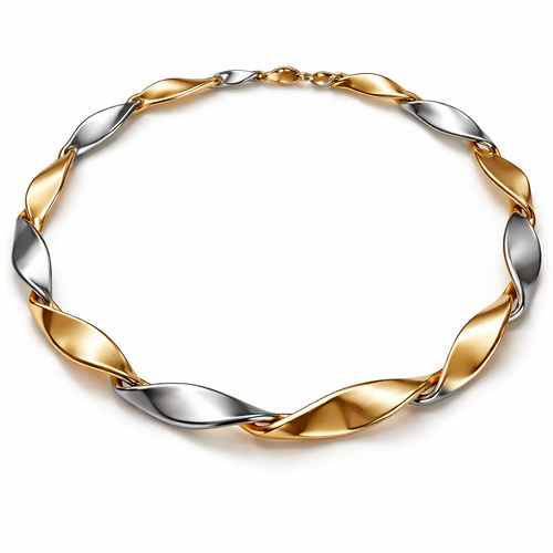 A flexible necklace which is not rigid and inspired of twisted flat wire and it has links that connected the small piece...