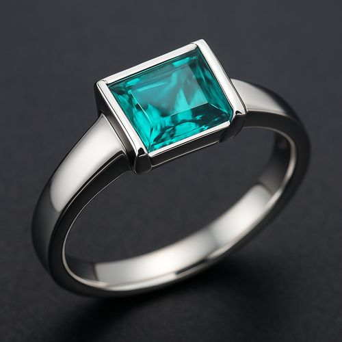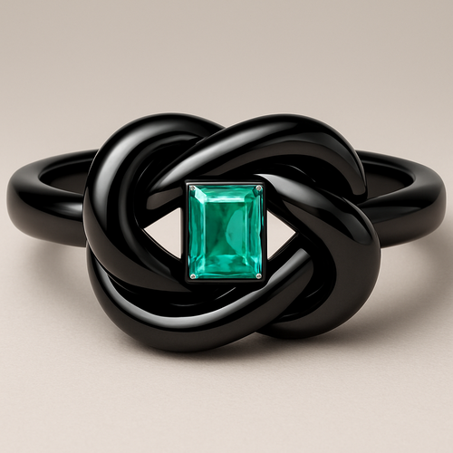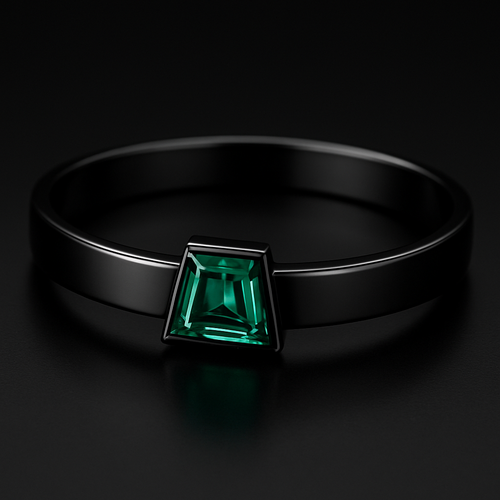 Gleiche Ring in schwarz glänzend mit grünem Diamant in Trapezform