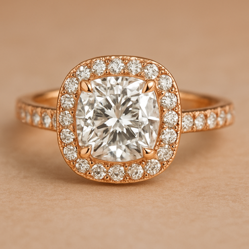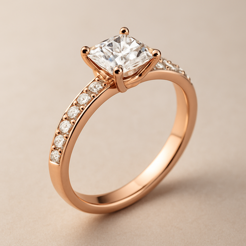 Gold-rosé Ring mit weißen Steinen in Diamantform