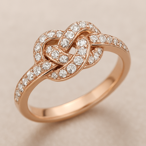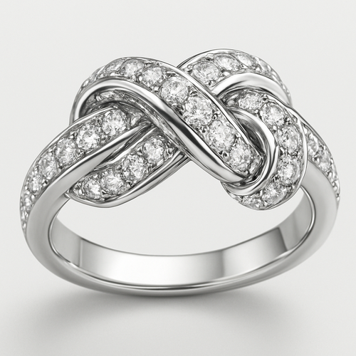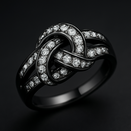 Schwarzer Ring mit weißen Steinen in Knotenform