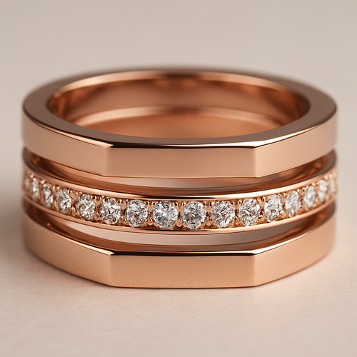 Ring Roségold 3Reihen oberste und untere eckig,Mitte rund mit Diamanten