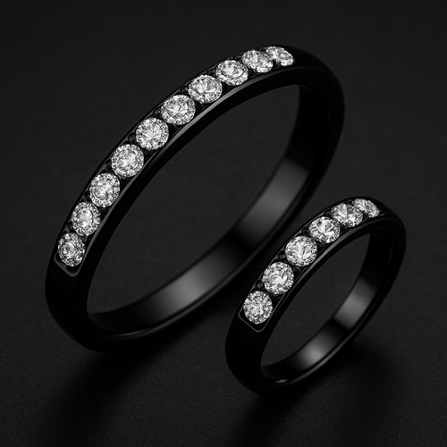 Schwarzes Armband mit feinen weißen Diamanten ca 0,5cm dich mit passendem Ring