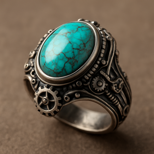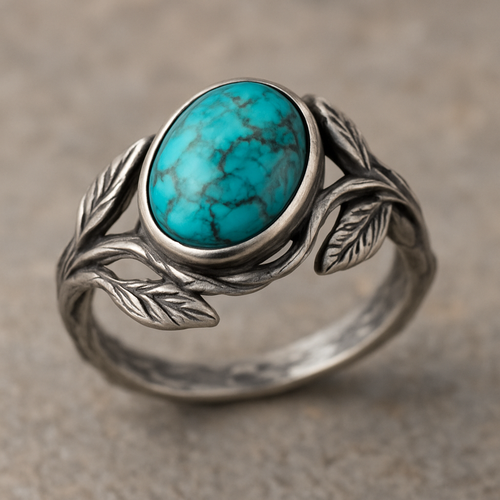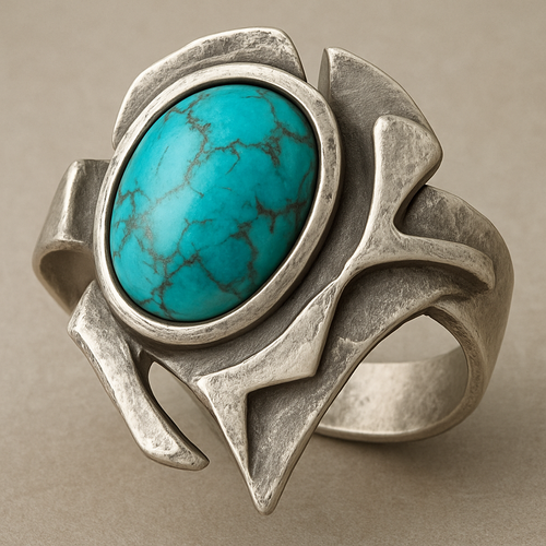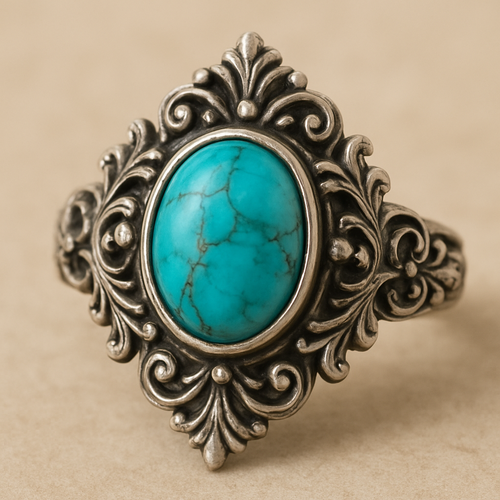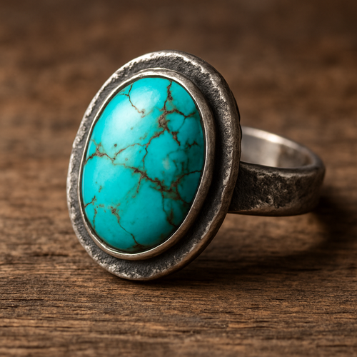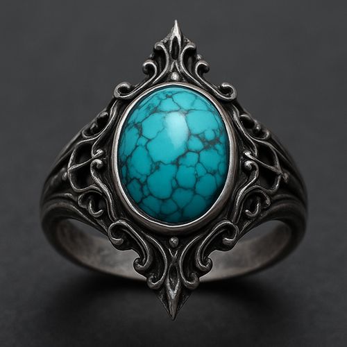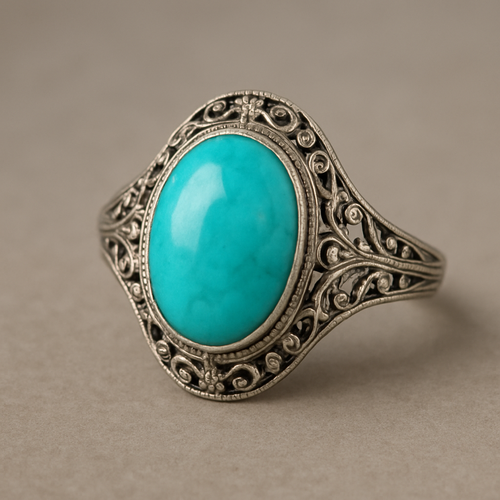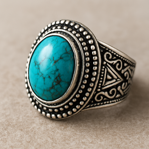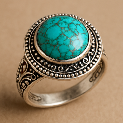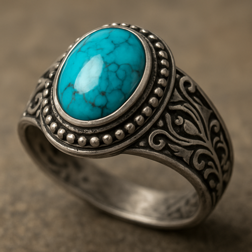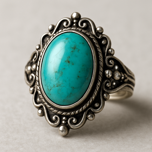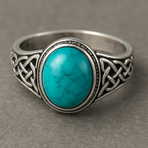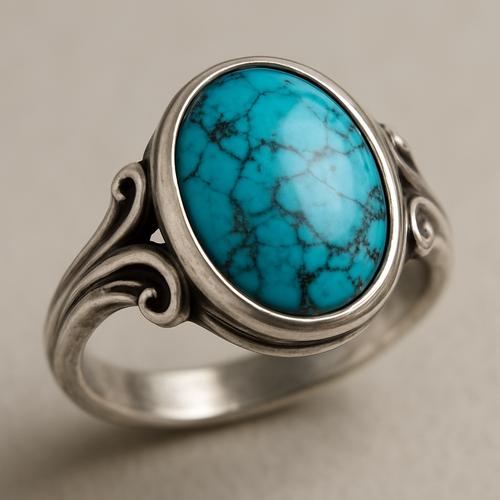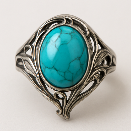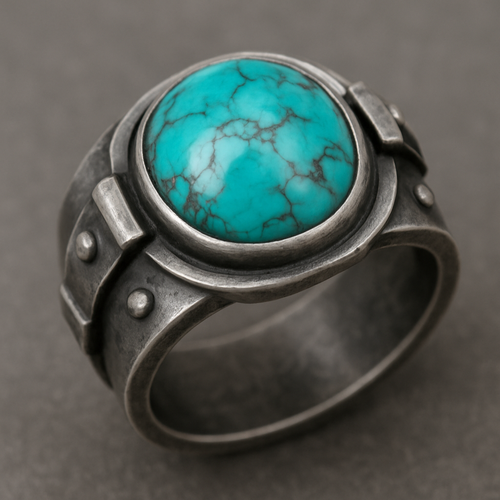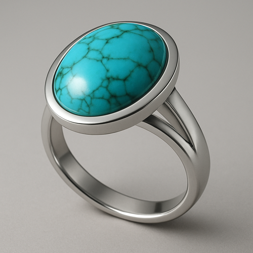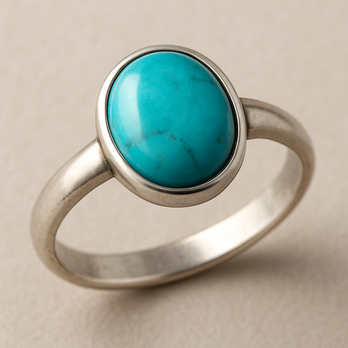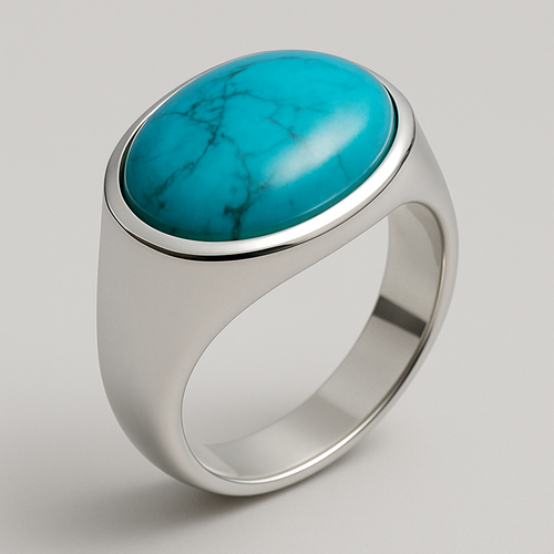 Turquoise cabochon on silver ring