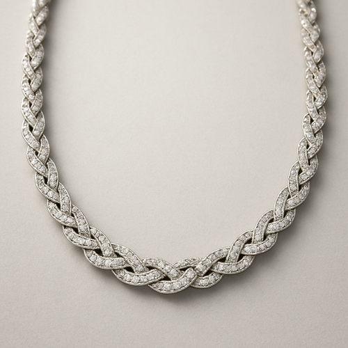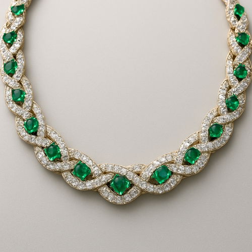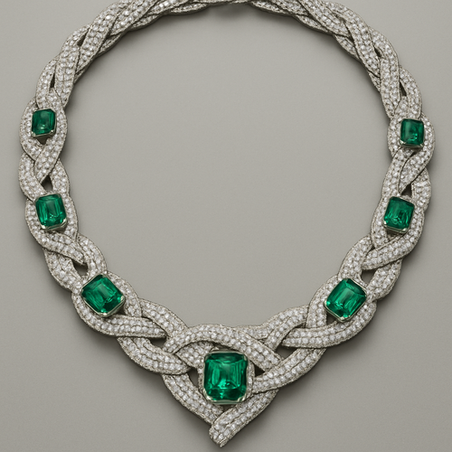 braided tennis necklace with diamond black enamel and emerald intertwined
