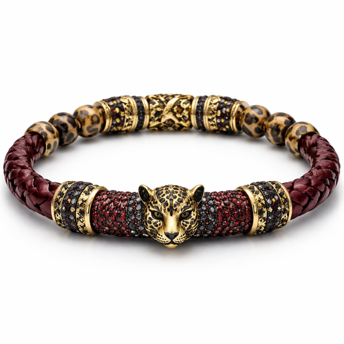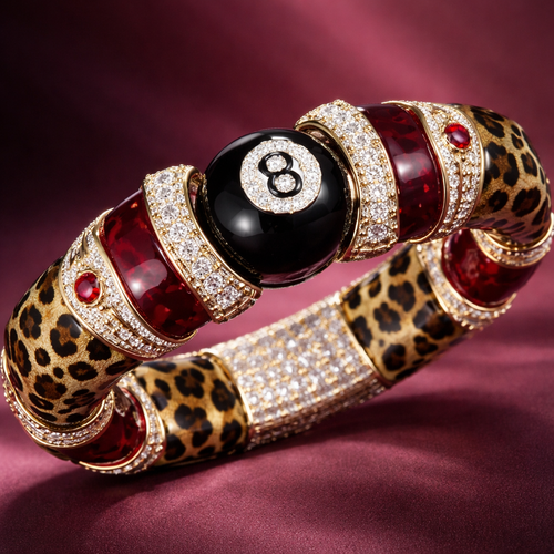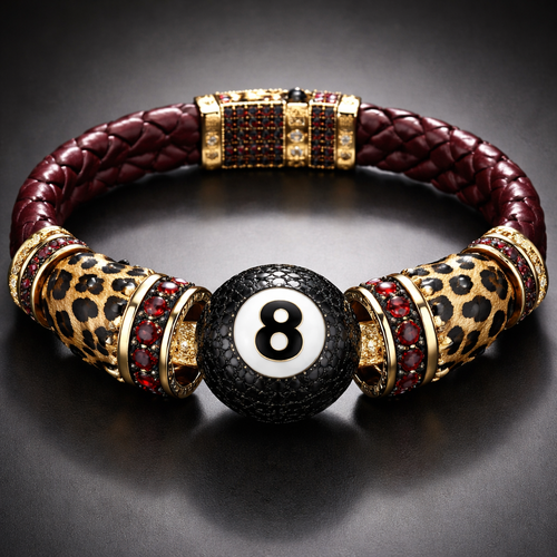 mens bracelet related to burgundy, leopard and pool 8 ball