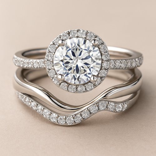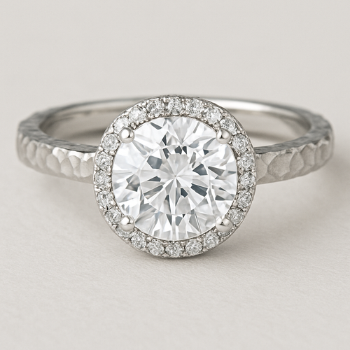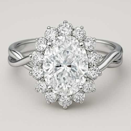 White gold 5 ct Portuguese cut oval diamond halo ring with twist band