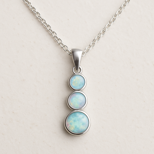 Dây chuyền làm bằng Bạc, đá opal. Thiết kế đơn điệu, cổ điển, phù hợp với ngày giáng sinh