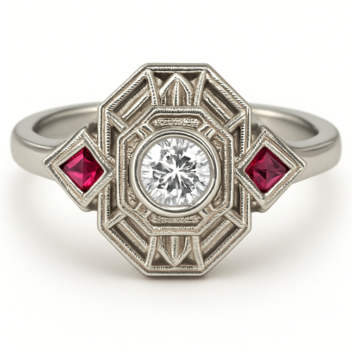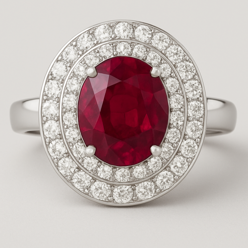 Ring with Whaite gold 18 k and small Whaite diamond center stone ruby