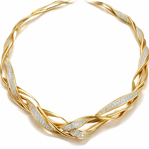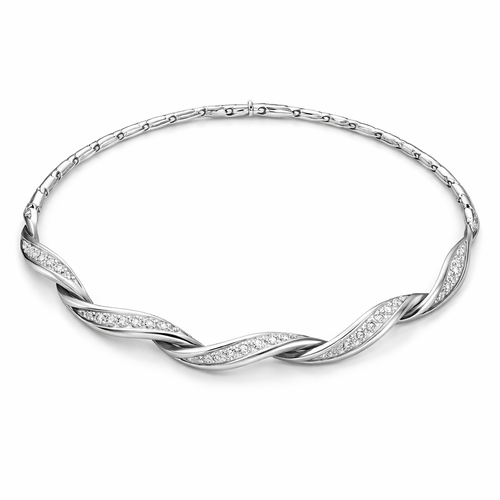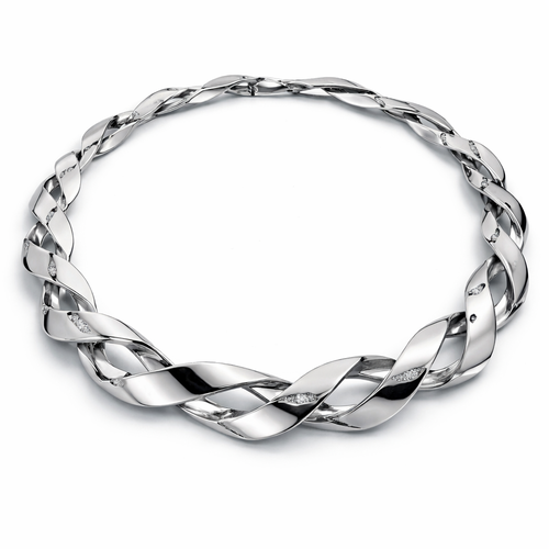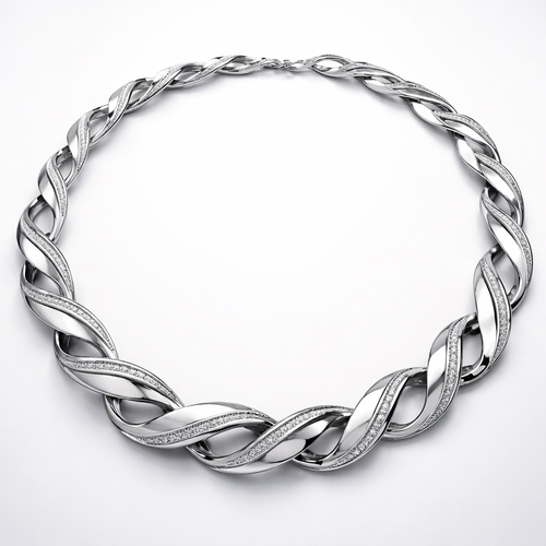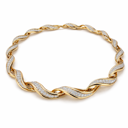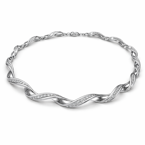 A twisted wire which is flat necklace with some small diamond on i,make ‘‘tis design with links to make it flexiblet