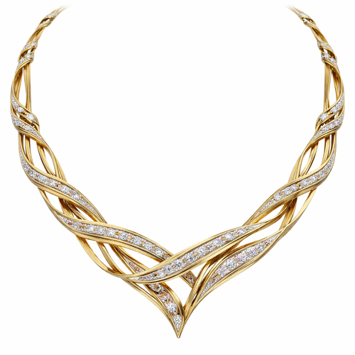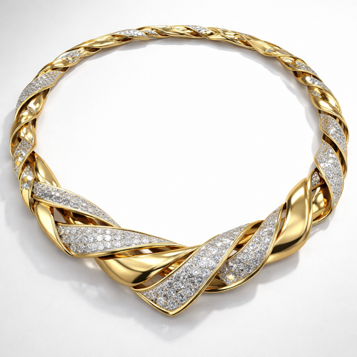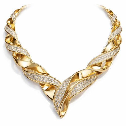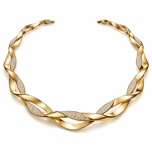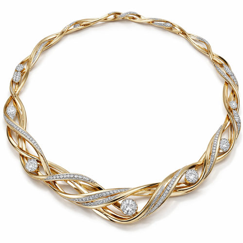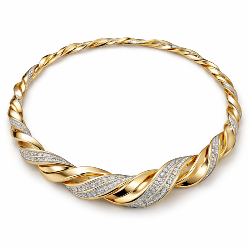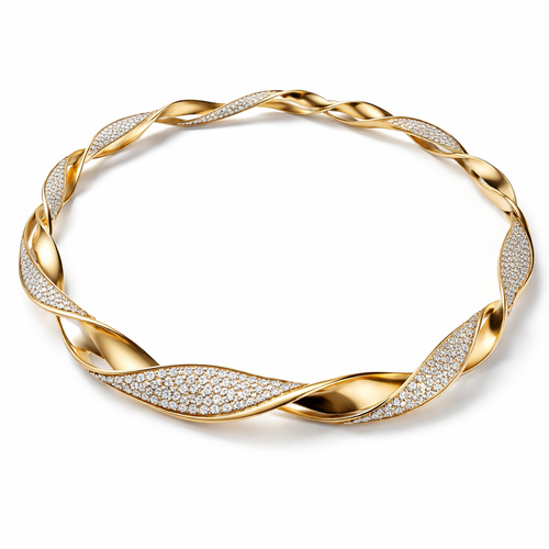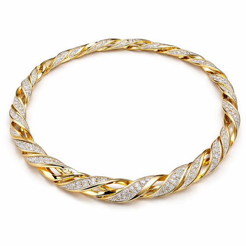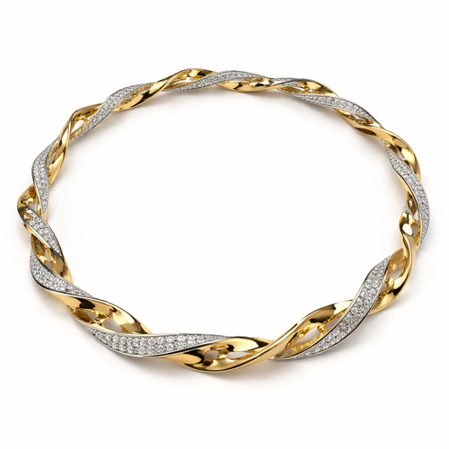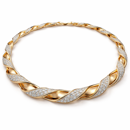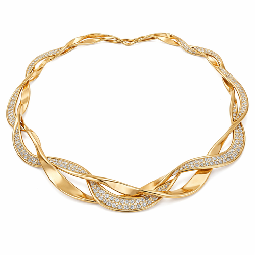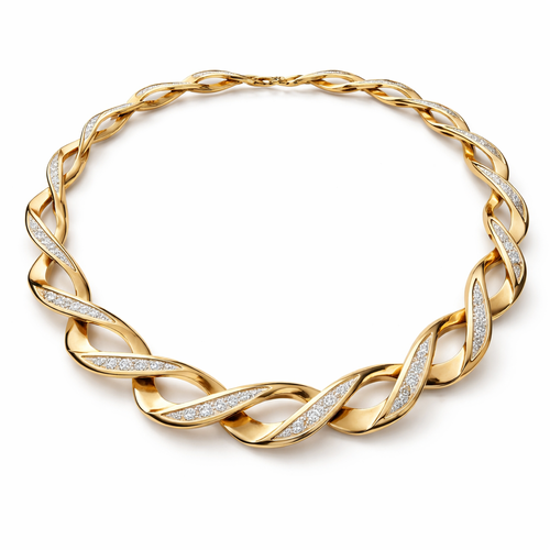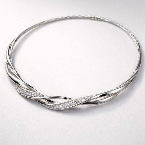 A twisted wire which is flat necklace with some small diamond on i,make ‘‘tis design with links to make it flexiblet.mak...
