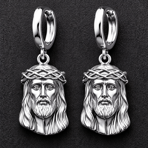 Silver Jesus piece earrings for men no diamonds at all and don’t want them hanging