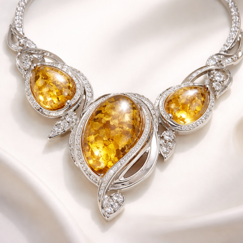 Tik gintaro akmenys karolis moteriai, geltona balta su idomiu dizainu nenaudoti spalvotoju metalu