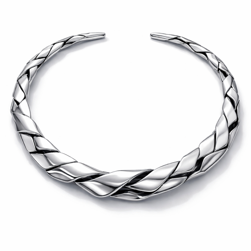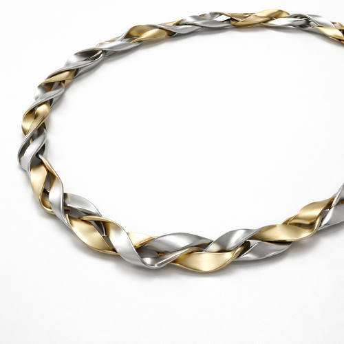 A flexible necklace that has links and articulations that inspired by a twisted flat wire