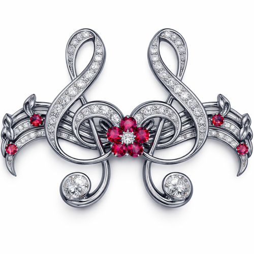 from the inside, connecting music notehead on each side with a small flower in the front of the piece of jewelry where ...