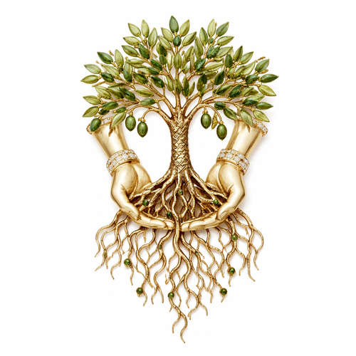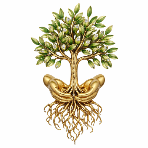 I wanna design jewellery for my newly born nephew a young olive tree, held by two downward female hands (no accessories ...
