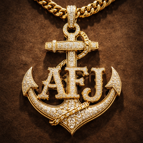 Anchor with the letters, AFJ with diamonds on a chain