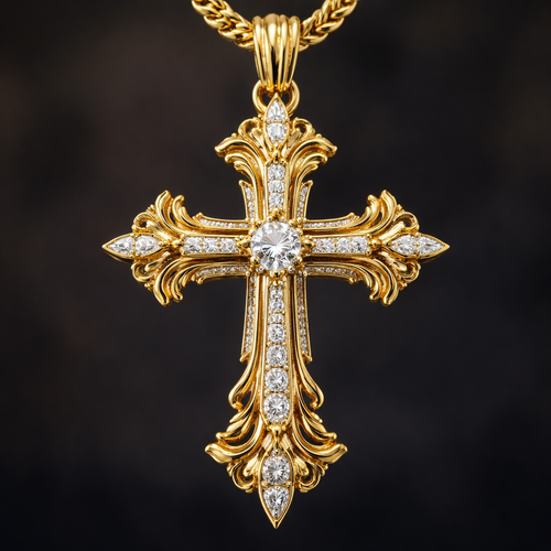 Make me a Christian cross pendent all gold that’s unique