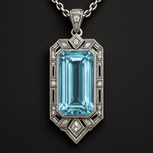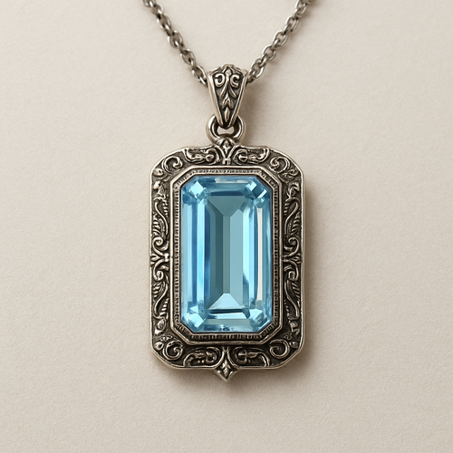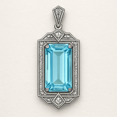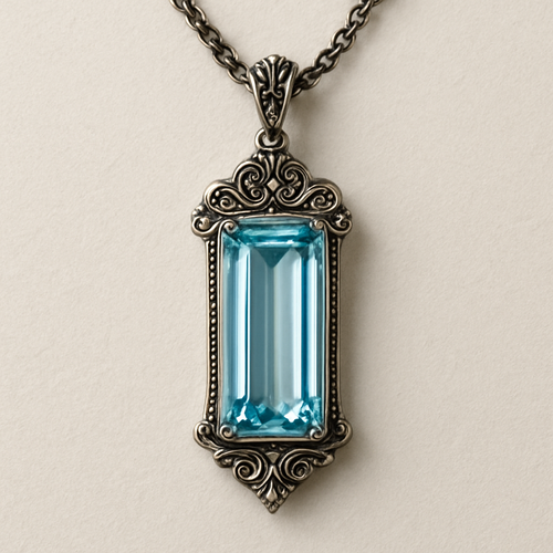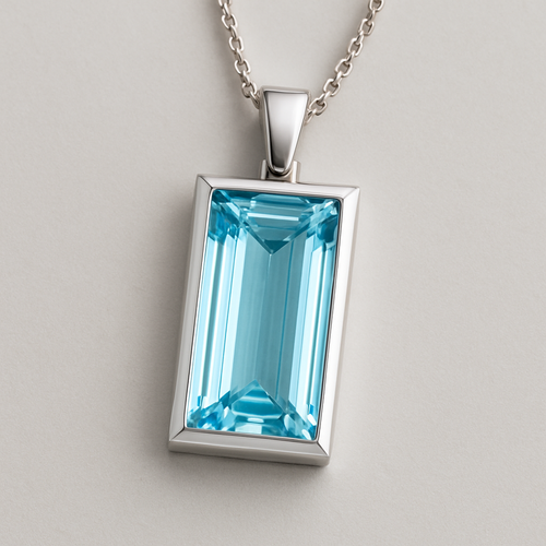 Long rectangle cut Aquamarine pendant