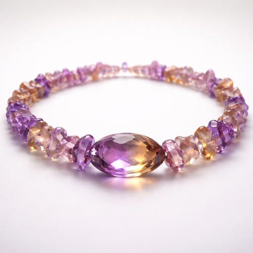 Choker using ametrine chips with a central stone but no metal setting