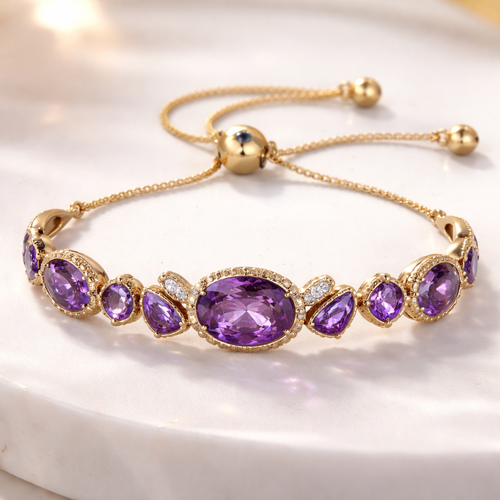 Gold adjustable bracelet with amethysts for Brahmin