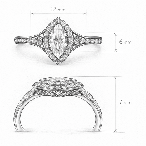 Ring marquise ring in sketch with messurements