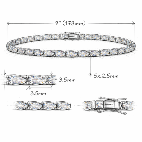 Diamond tennis marquise setting stone bracelet as a stetch with messurements