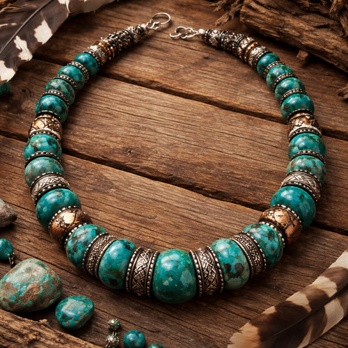 Turquoise beaded necklace with metal spacers