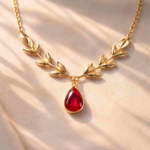 İtalian style for summer with leaf shape chains, red stone, inspire by passion. Gold