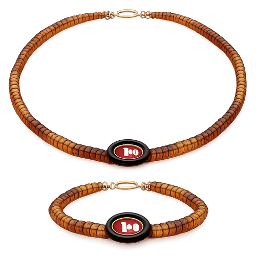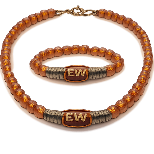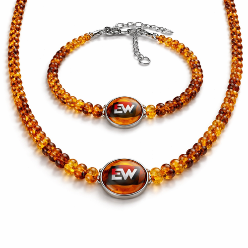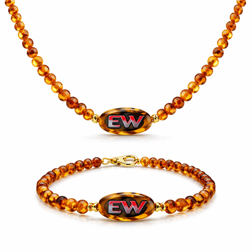 Necklace and bracelet only amber stones small size EVW logo on the amber stone red and black and white colours
