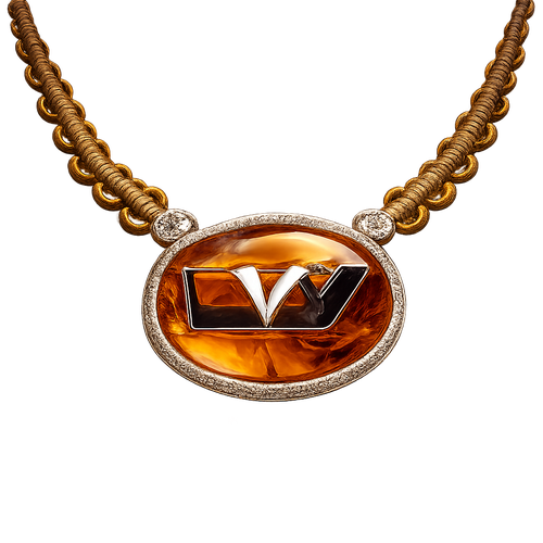 Necklace only amber stones small size EVW logo on the amber stone red and black