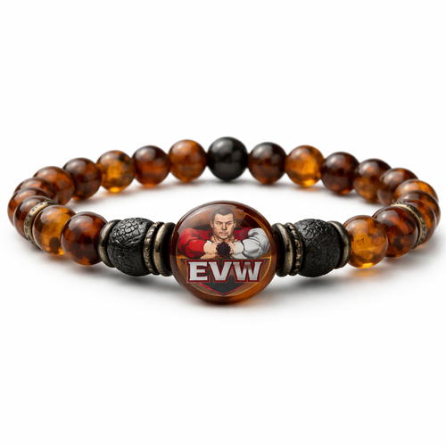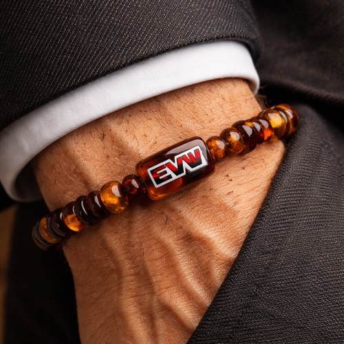 Do not use silver or gold and bracelet for man only amber stones small size EVW logo on the amber stone red and black an...