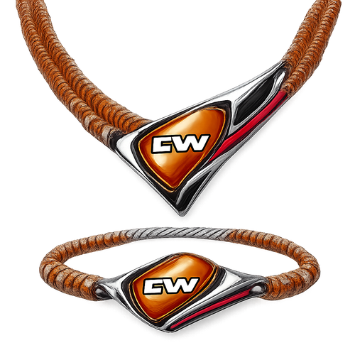 Steel nes Necklace and bracelet for man only amber stones small size EVW logo on the amber stone red and black and white...