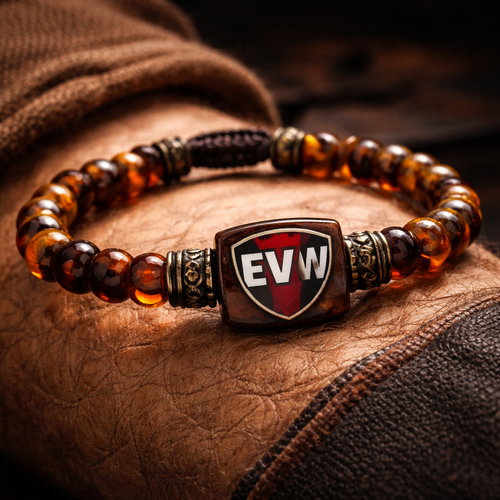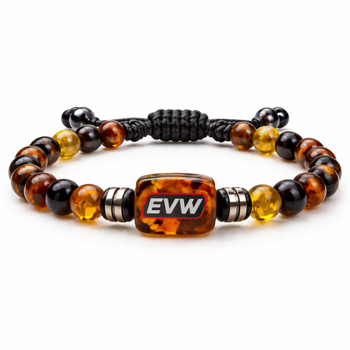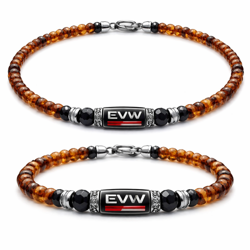 Do not use silver or gold or bronze and bracelet for man only amber stones small size EVW logo on the amber stone red an...