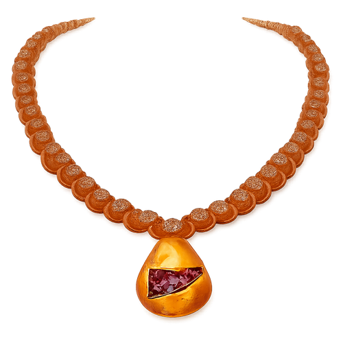 Necklace only amber stones small size EVW logo red and black