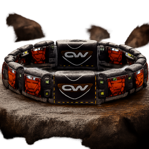Only Ambers stone bright red black colour man’s bracelet EVW sports logo arm