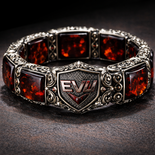 Only natural Ambers stone square bright red black colour man’s bracelet EVW sports logo arm