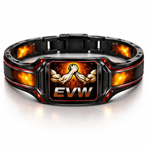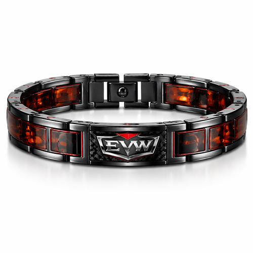 Only Amber red black colour man’s bracelet EVW sports logo arm