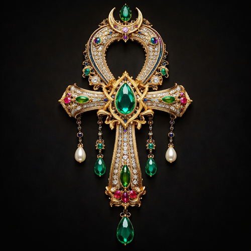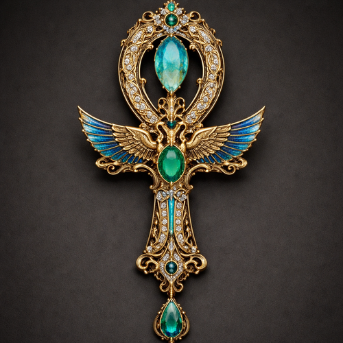 Kee of life égyptienne royal emirate Gold Green stone