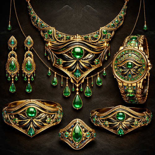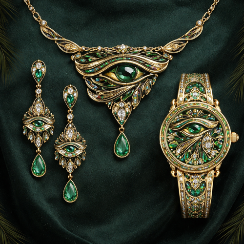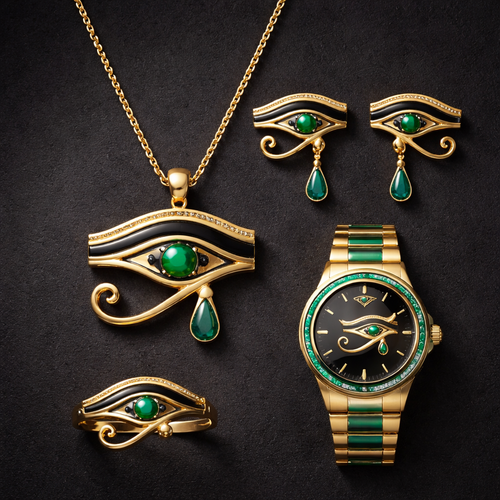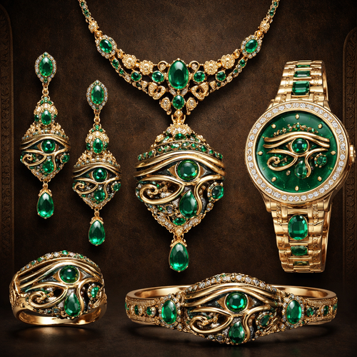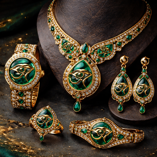 emirate eye of urus safari Green Gold dark Egypt simple set earing watches neckles full set miniature